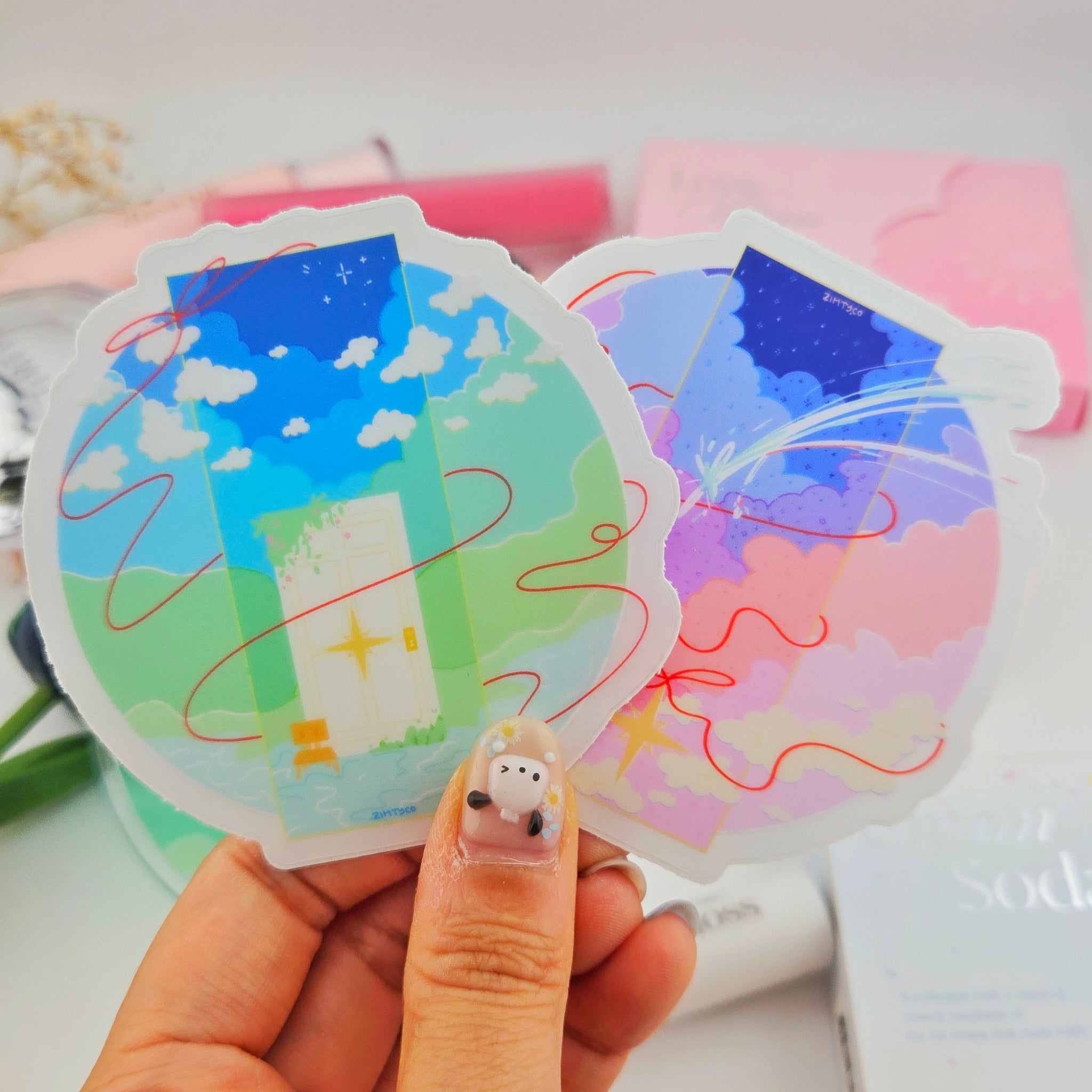Clear Matte Vinyl Stickers inspired by Your Name and Suzume, tying it all back to the Red String of Fate!