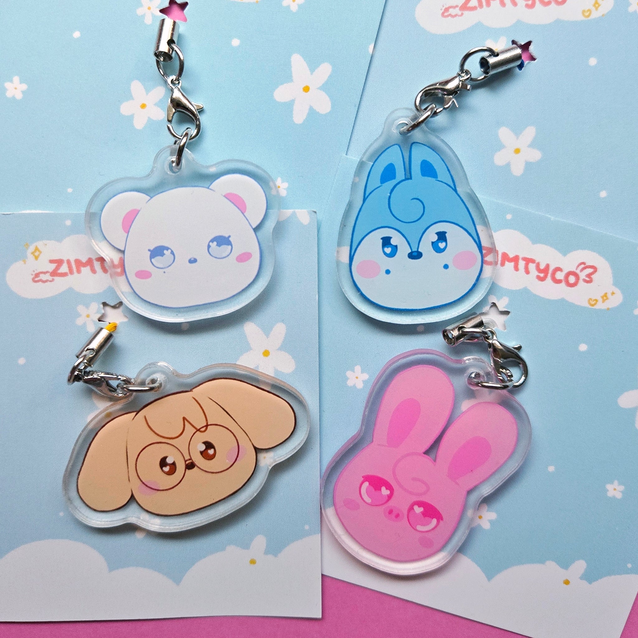 Small WolfChan/PuppyM/Dwaekki and Jiniret Phone Charms modeled after their pillow designs!